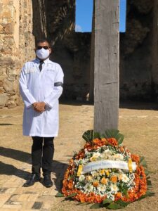 Uma coroa de flores foi colocada aos pés de um cruzeiro e uma faixa exibia a mensagem “Florence Nightingale VIVE”, com tradução da palavra VIVE em vários idiomas. O enfermeiro Murilo ainda leu um texto sobre Florence, que emocionou a todos os presentes.