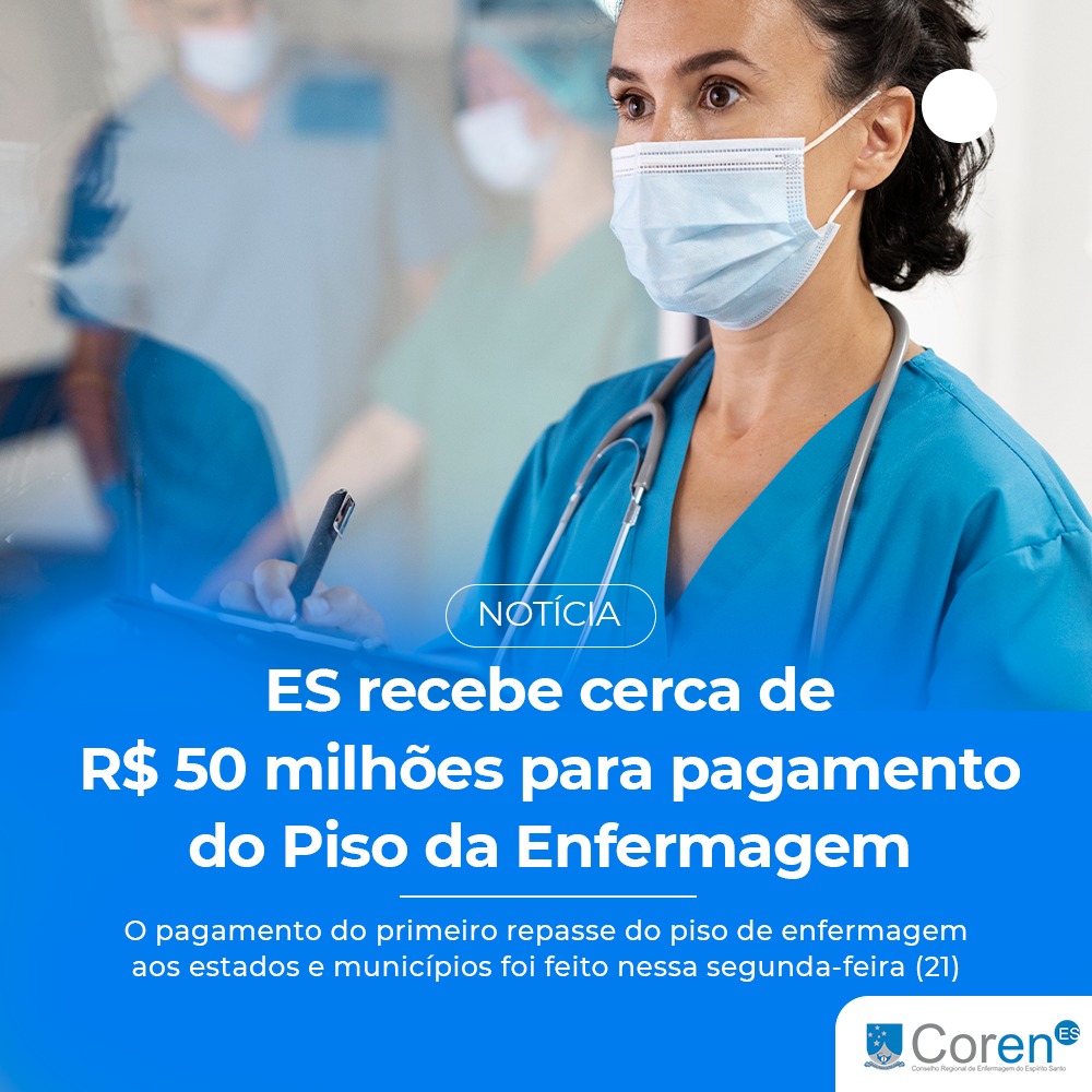 O Governo Federal realizou, nessa segunda-feira (21), o repasse de aproximadamente R$ 50 milhões para o estado do Espírito Santo e municípios capixabas como complementação para o pagamento do piso salarial dos profissionais de Enfermagem de maio a agosto. Com a ordem de pagamento expedida nessa segunda, a previsão é que até quarta-feira (23) todos os entes recebam o recurso.