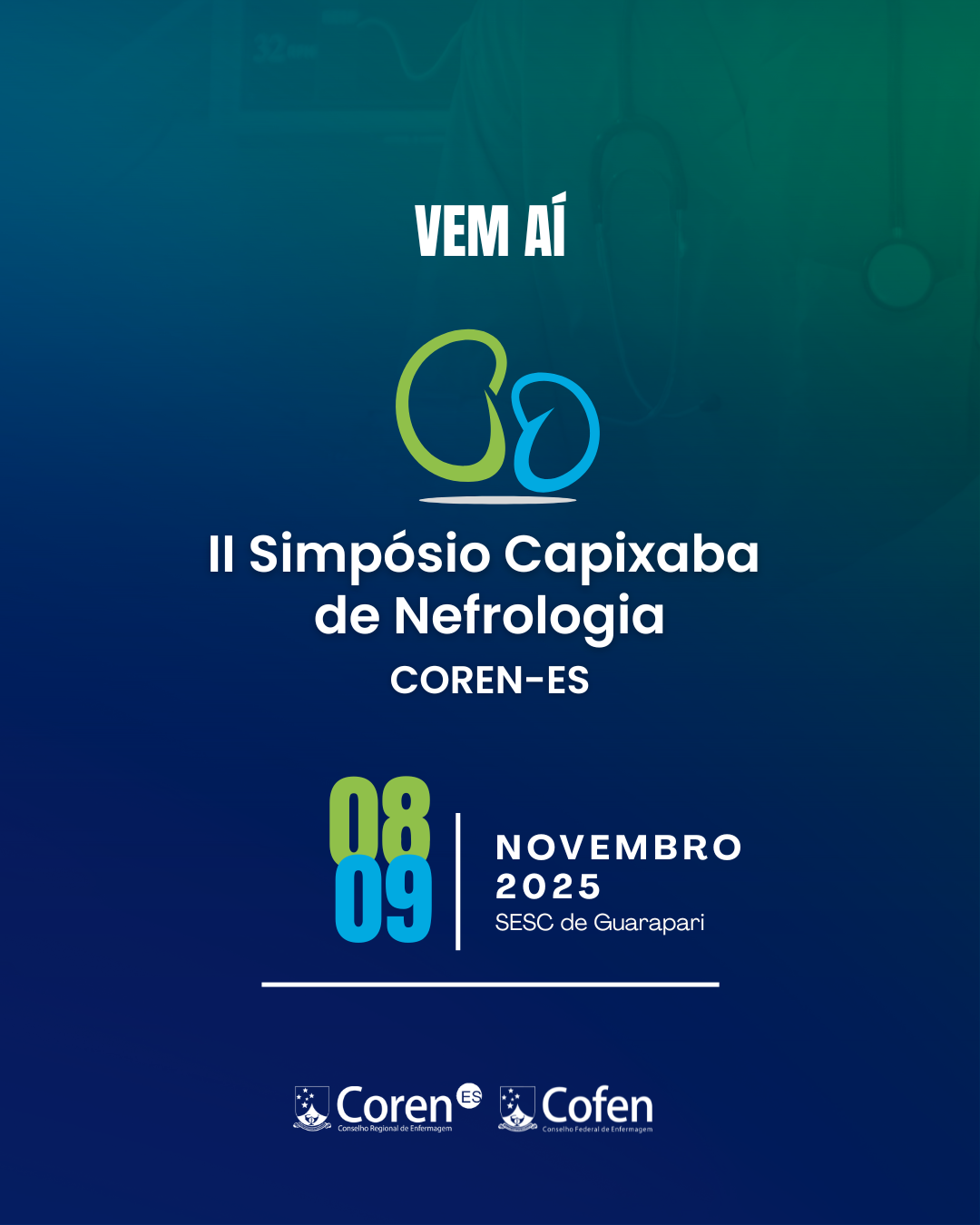 Nos dias 8 e 9 de novembro de 2025, o SESC de Guarapari receberá o II Simpósio Capixaba de Nefrologia do Conselho Regional de Enfermagem do Espírito Santo (Coren-ES), um evento dedicado a profissionais e estudantes de Enfermagem que atuam ou têm interesse na área da saúde renal.